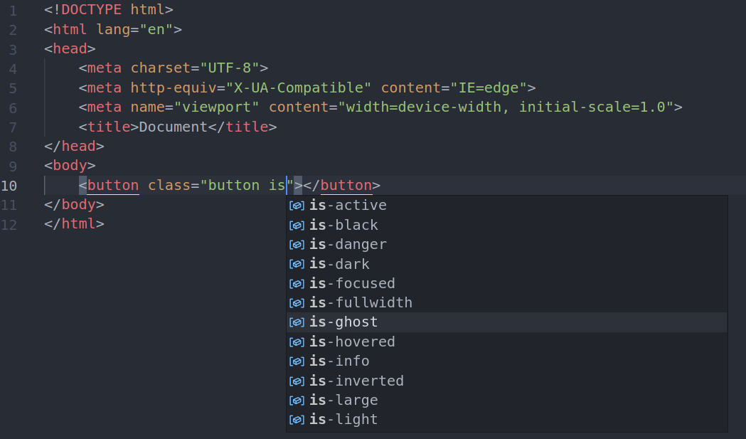 Visual Studio Code extension that provides CSS class name completion for the HTML class attribute based on Bulma CSS classes.