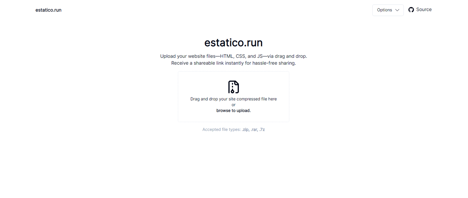 Upload your website files—HTML, CSS, and JS—via drag and drop.